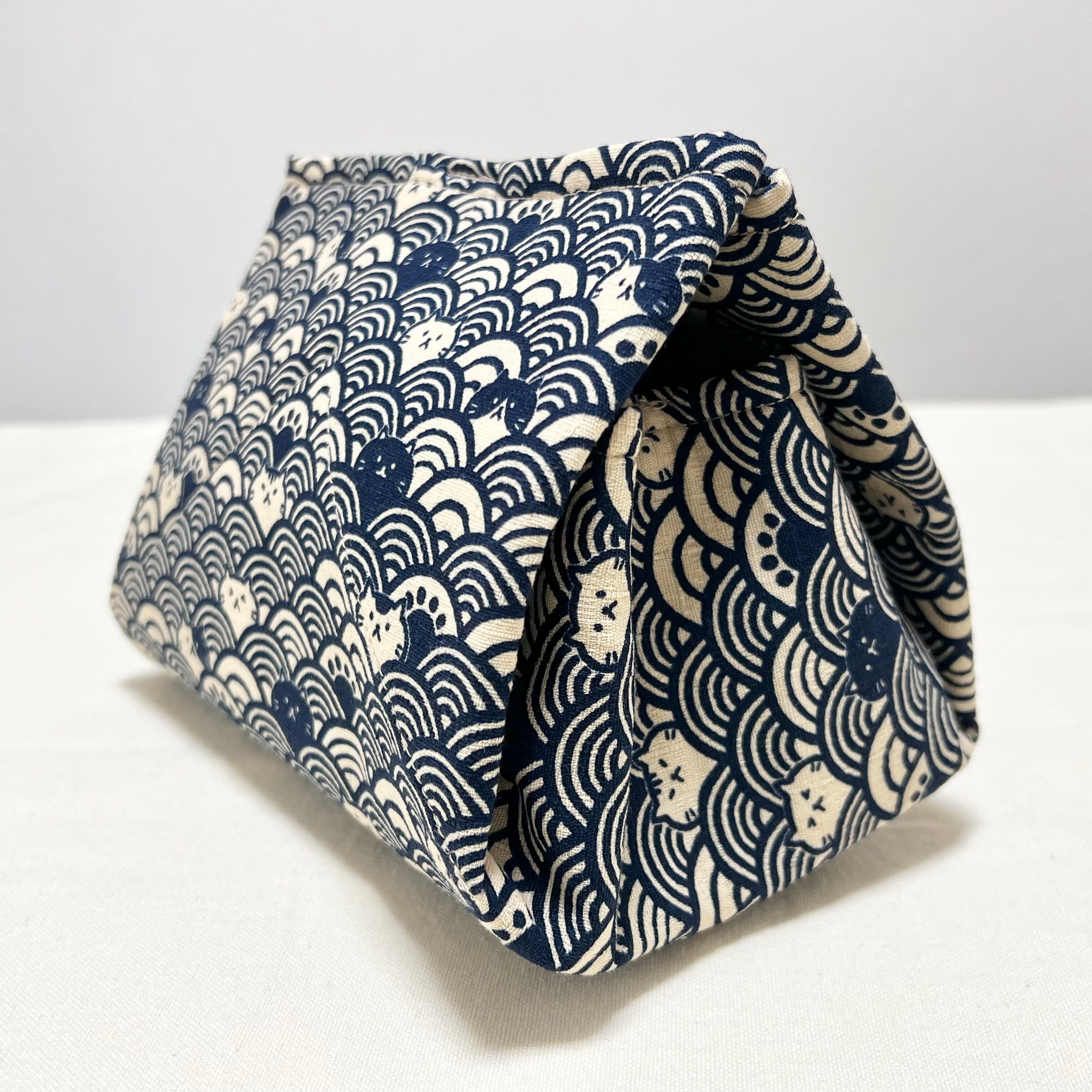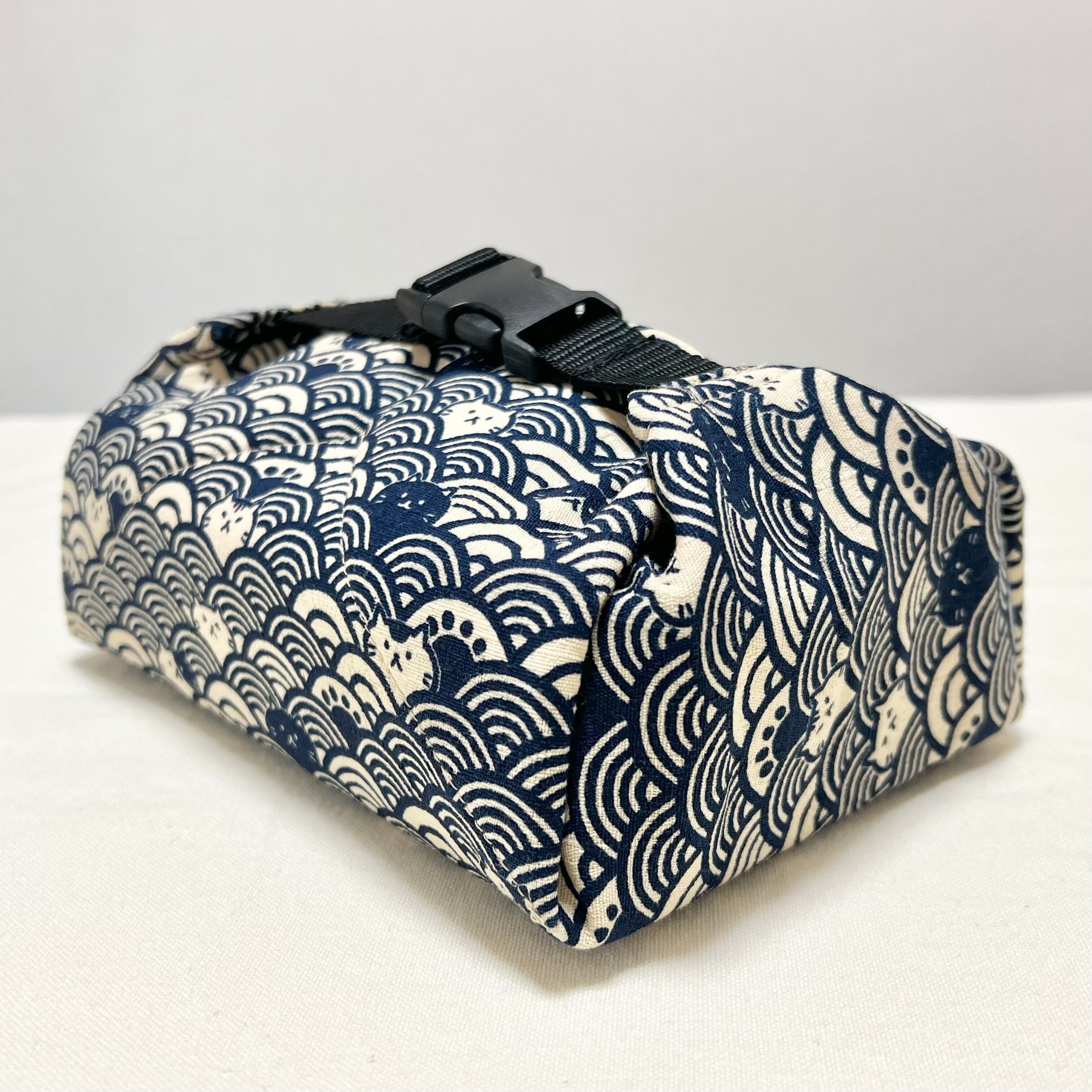 保冷剤ポケット付3WAYお弁当袋/青海波紋と猫