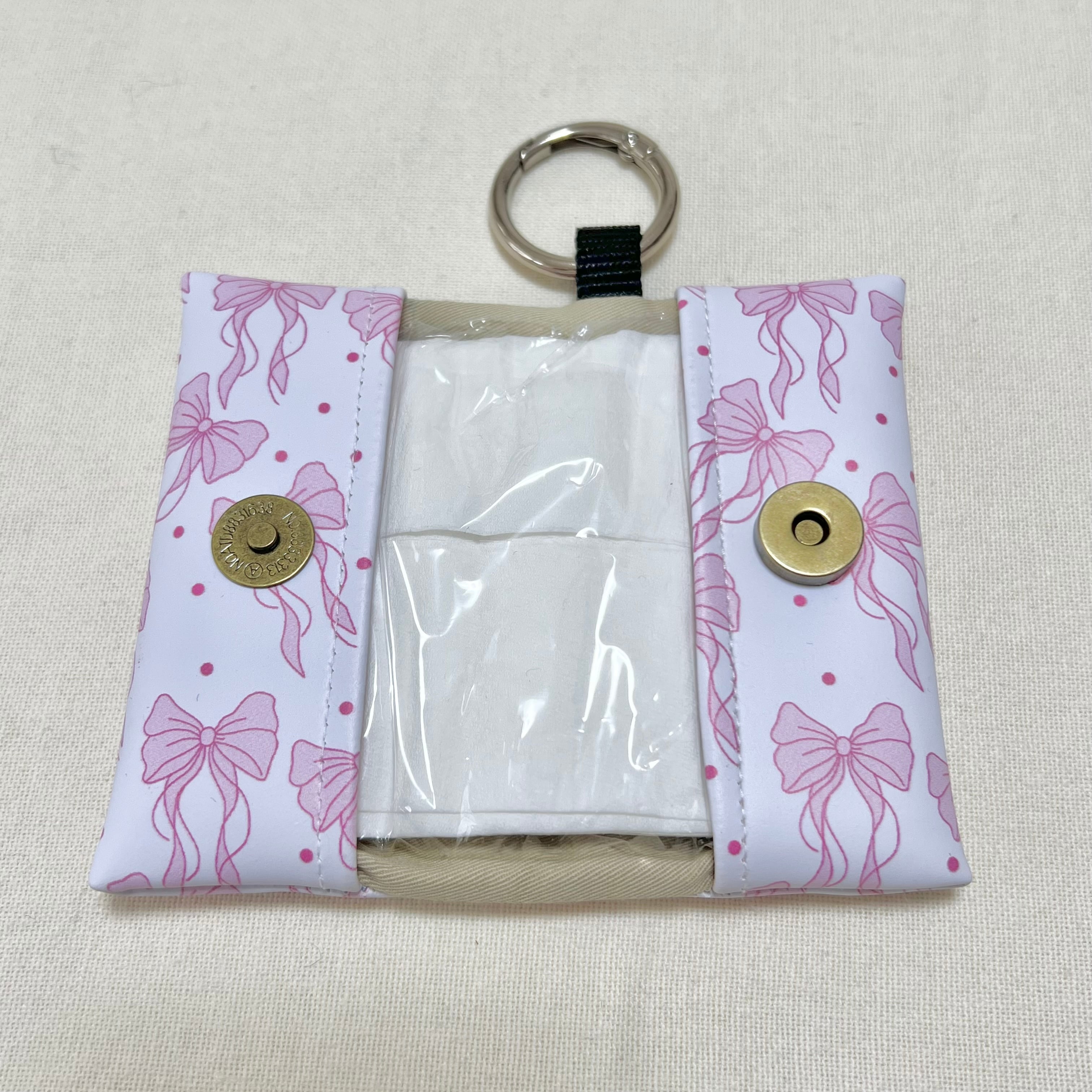【旧商品・ネット販売限定】マグネット開閉ティッシュケース/リボン柄(ピンク×白)