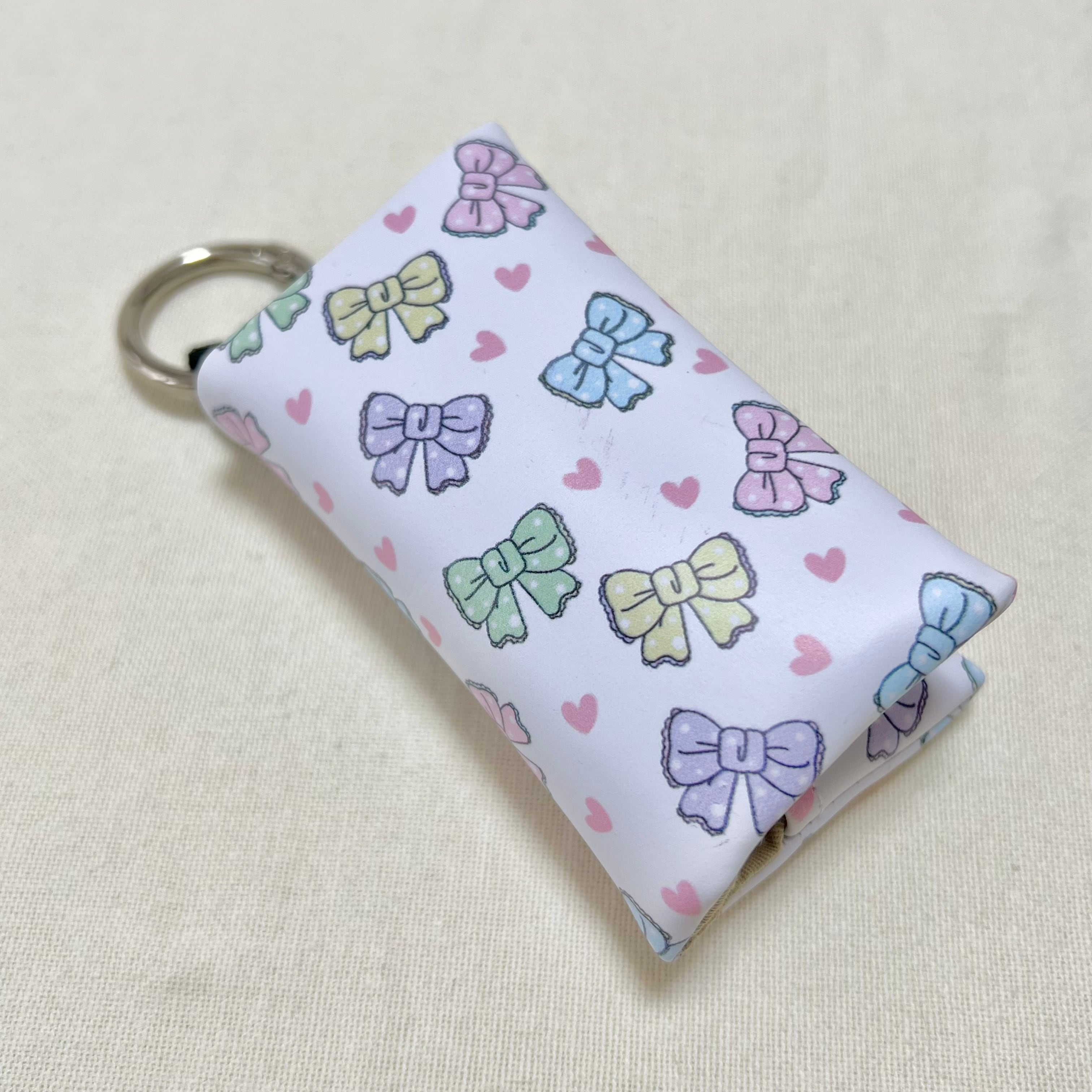 【旧商品・ネット販売限定】マグネット開閉ティッシュケース/リボン柄(カラフル×白)