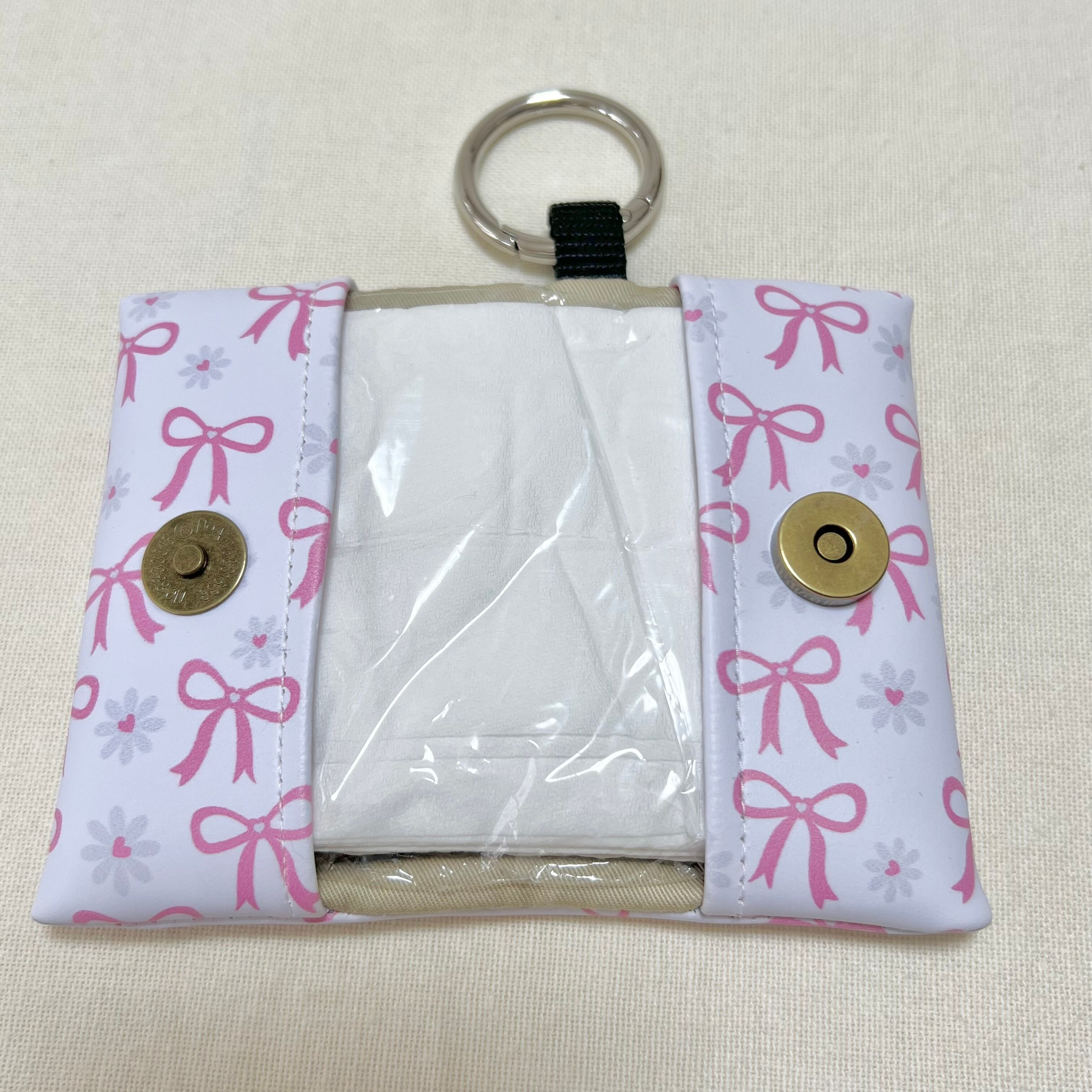 【旧商品・ネット販売限定】マグネット開閉ティッシュケース/リボン×花柄(ピンク×白)
