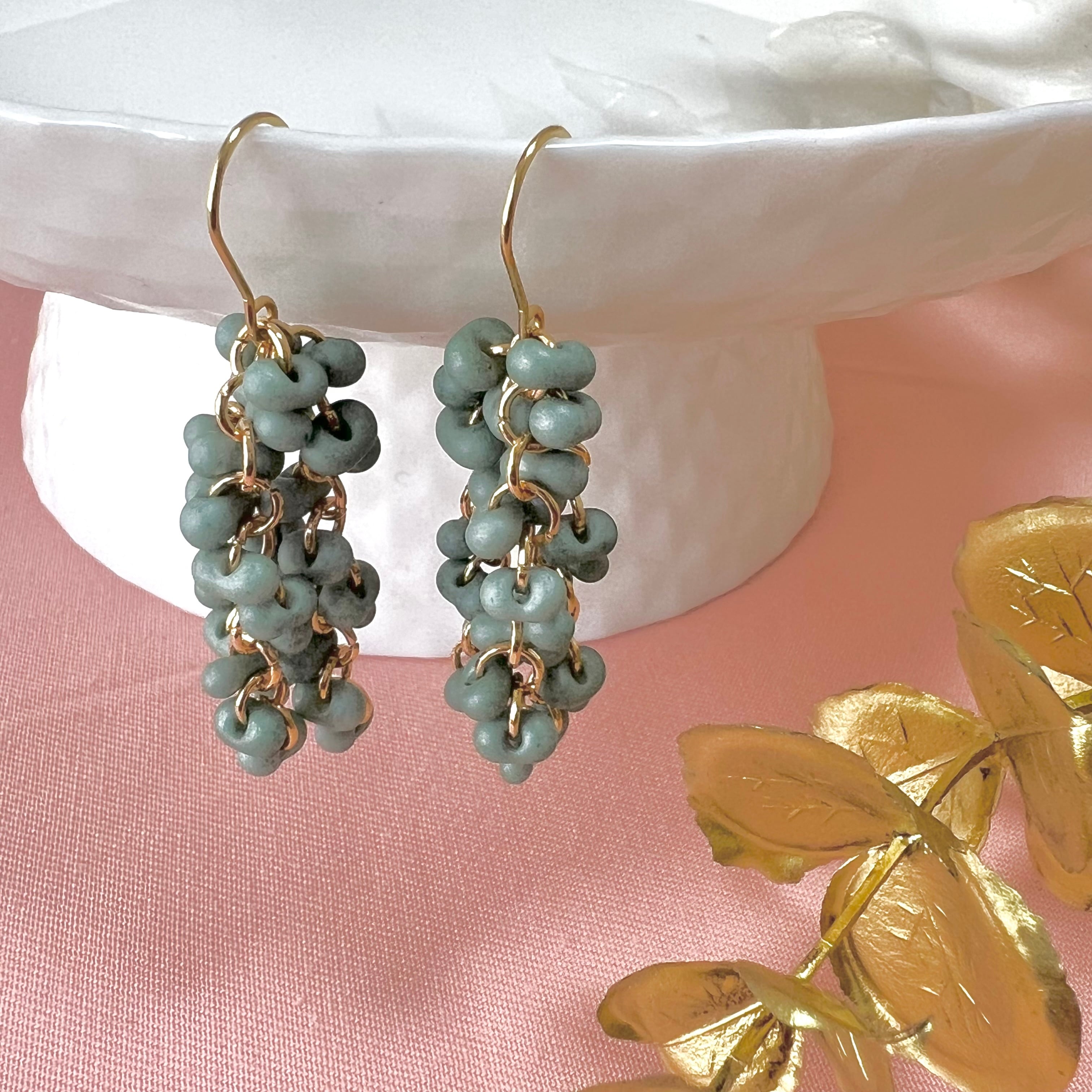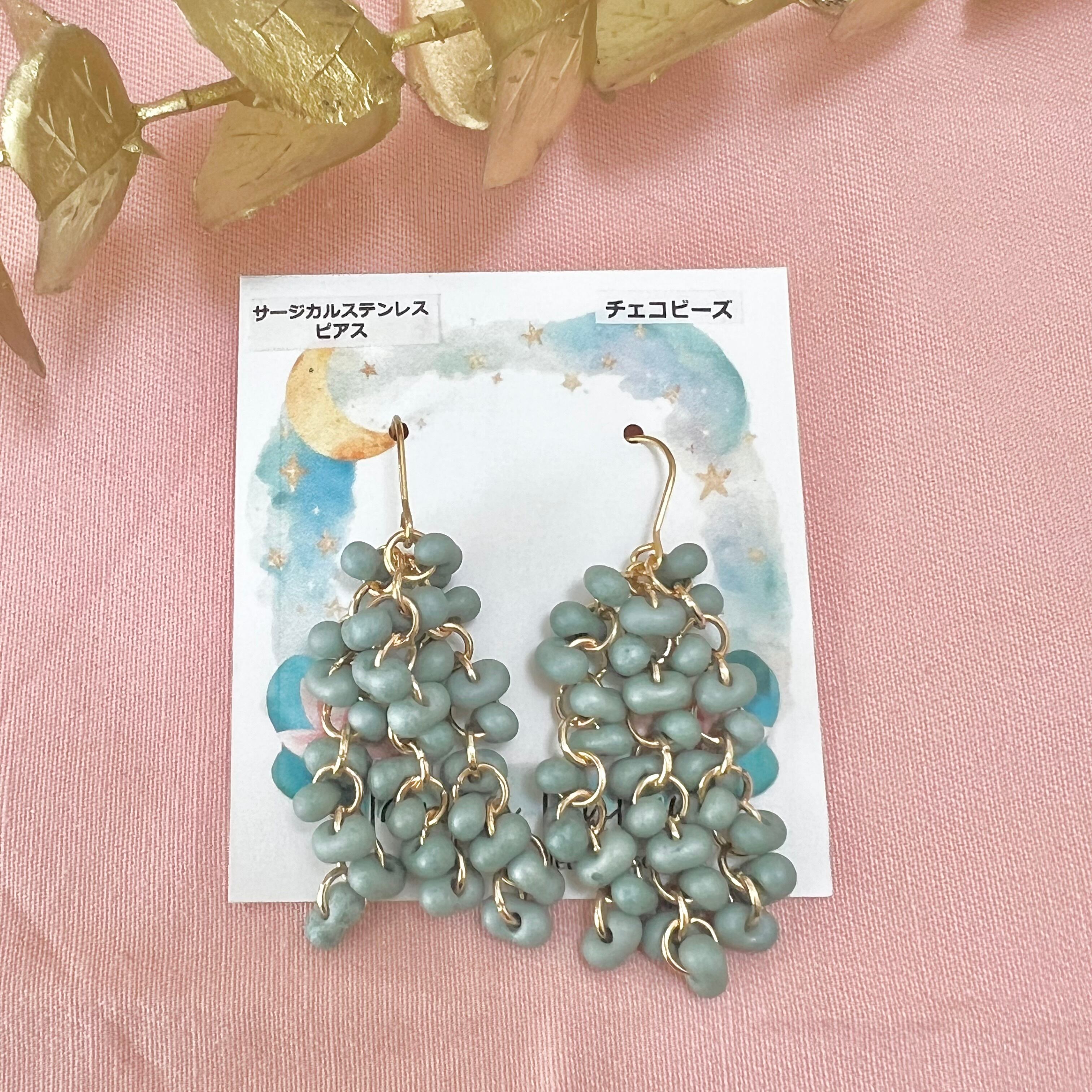 ワイヤーワークピアス:チェコビーズ(ブルーグレー)