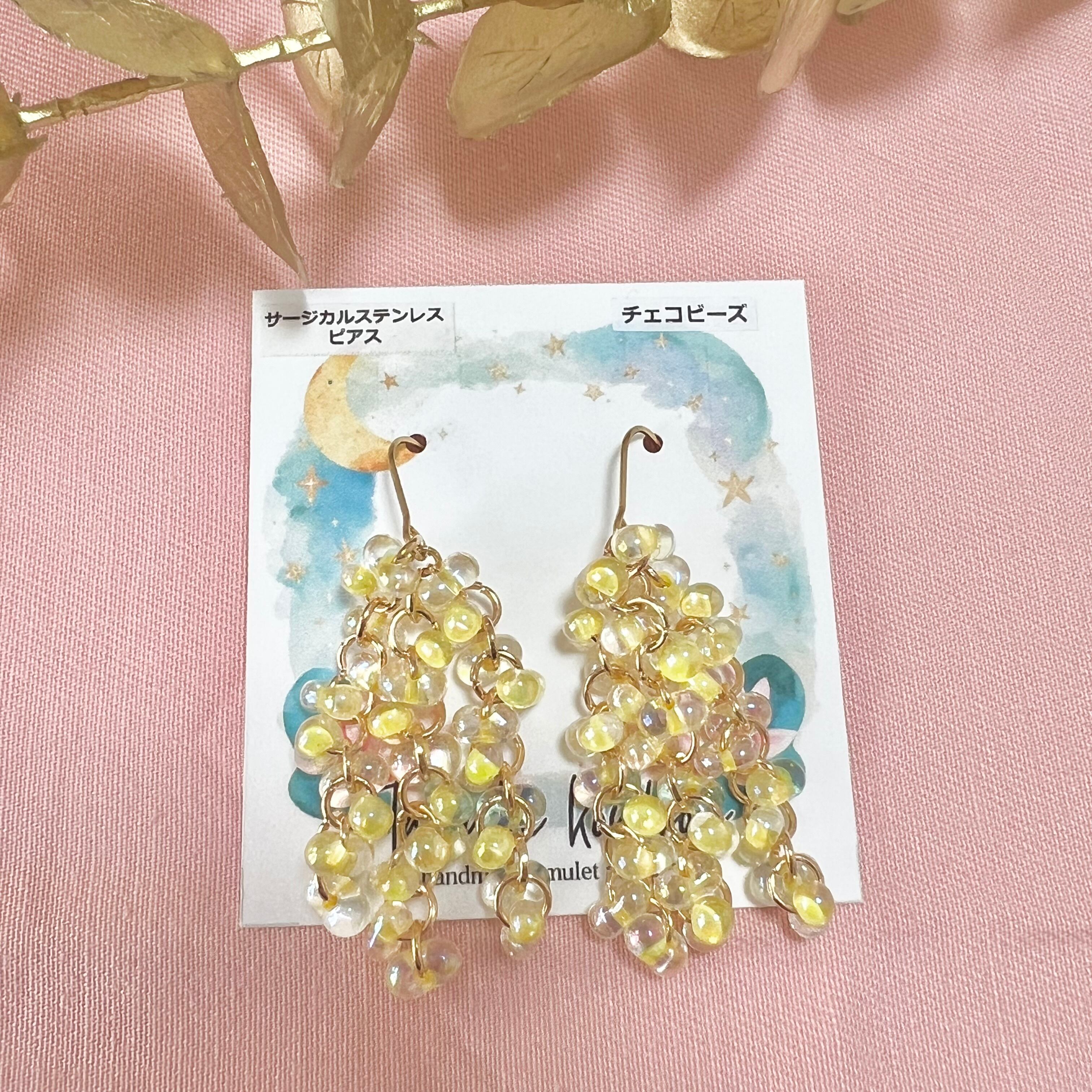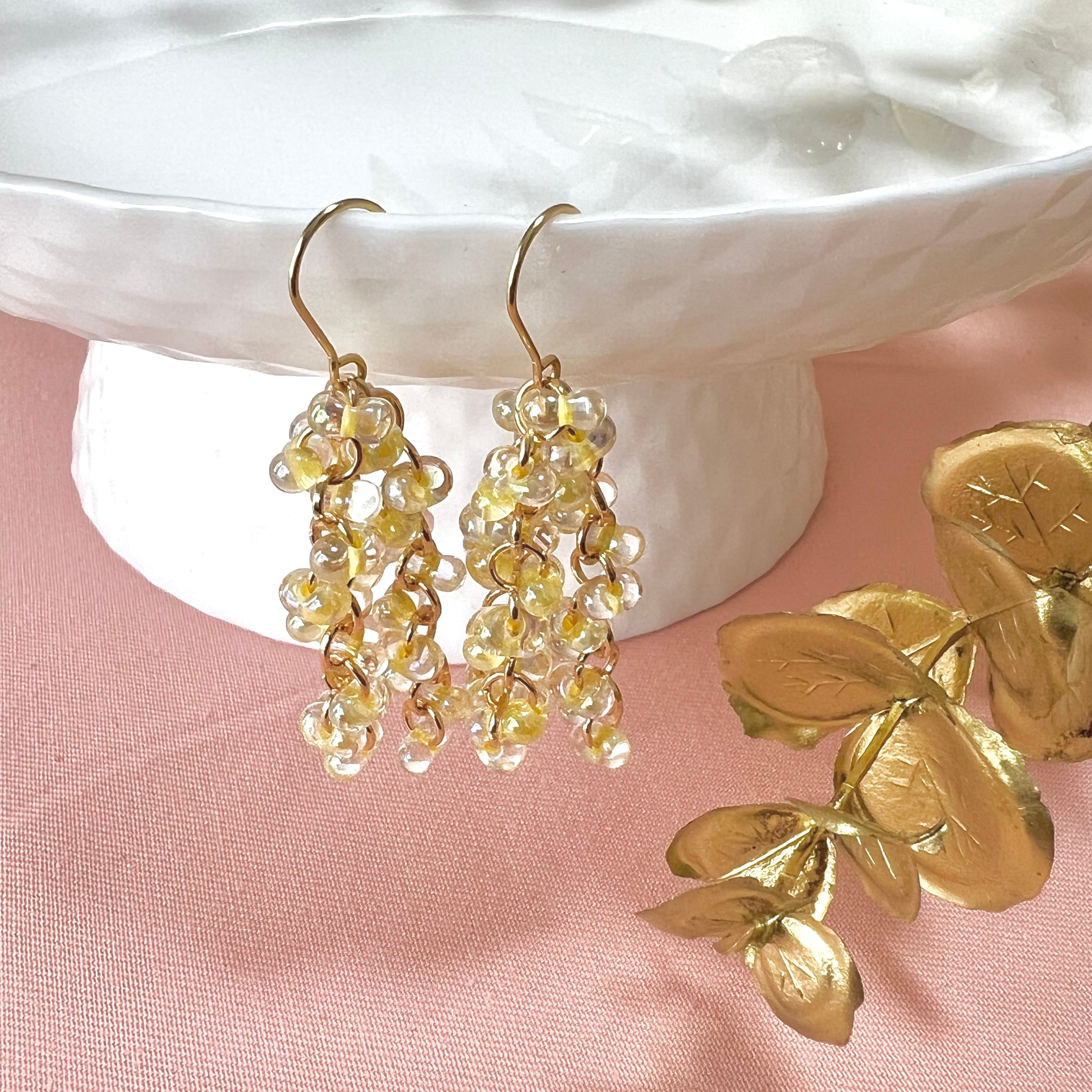 ワイヤーワークピアス:チェコビーズ(クリアイエロー)