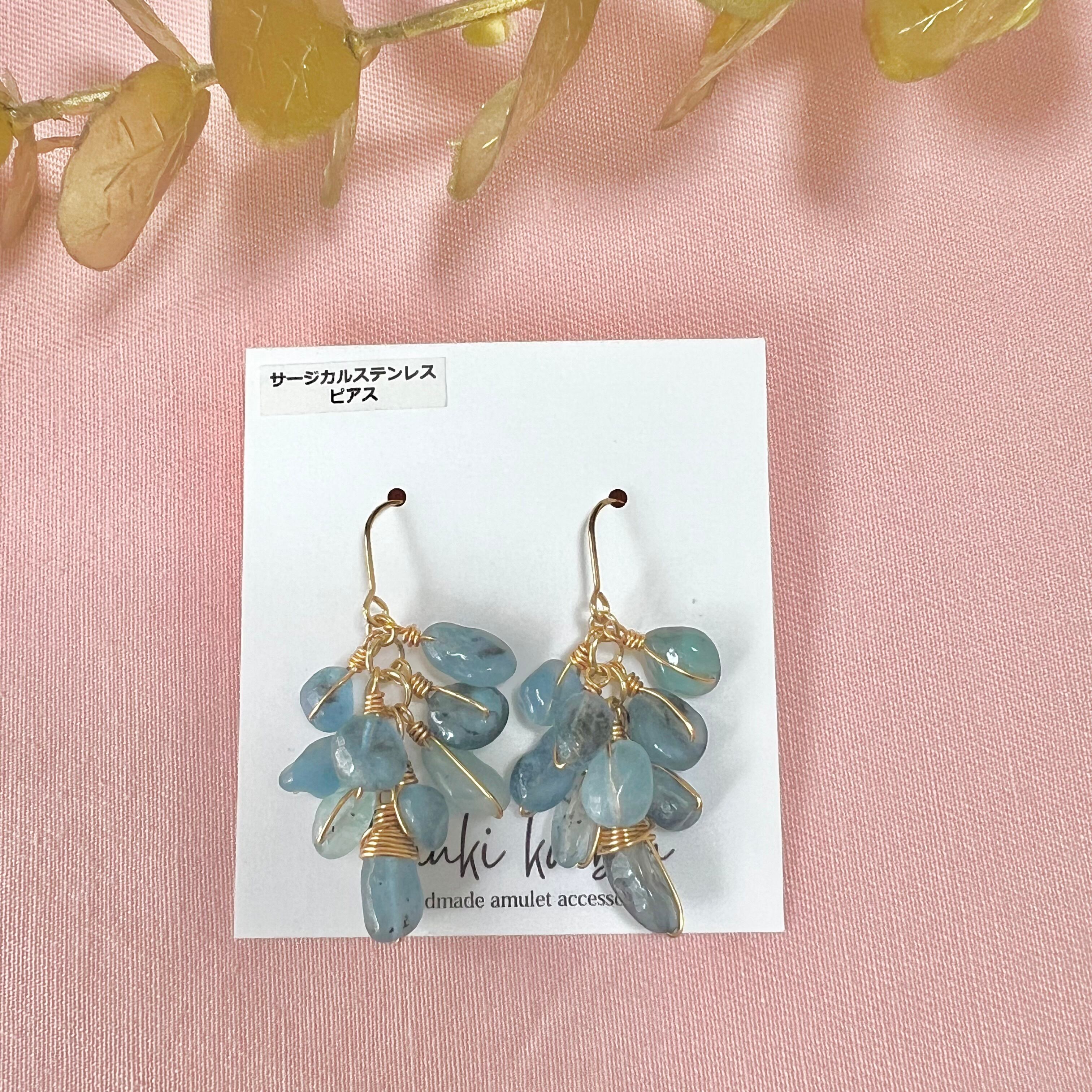 ワイヤーワークピアス:アクアマリン(ブルー系)