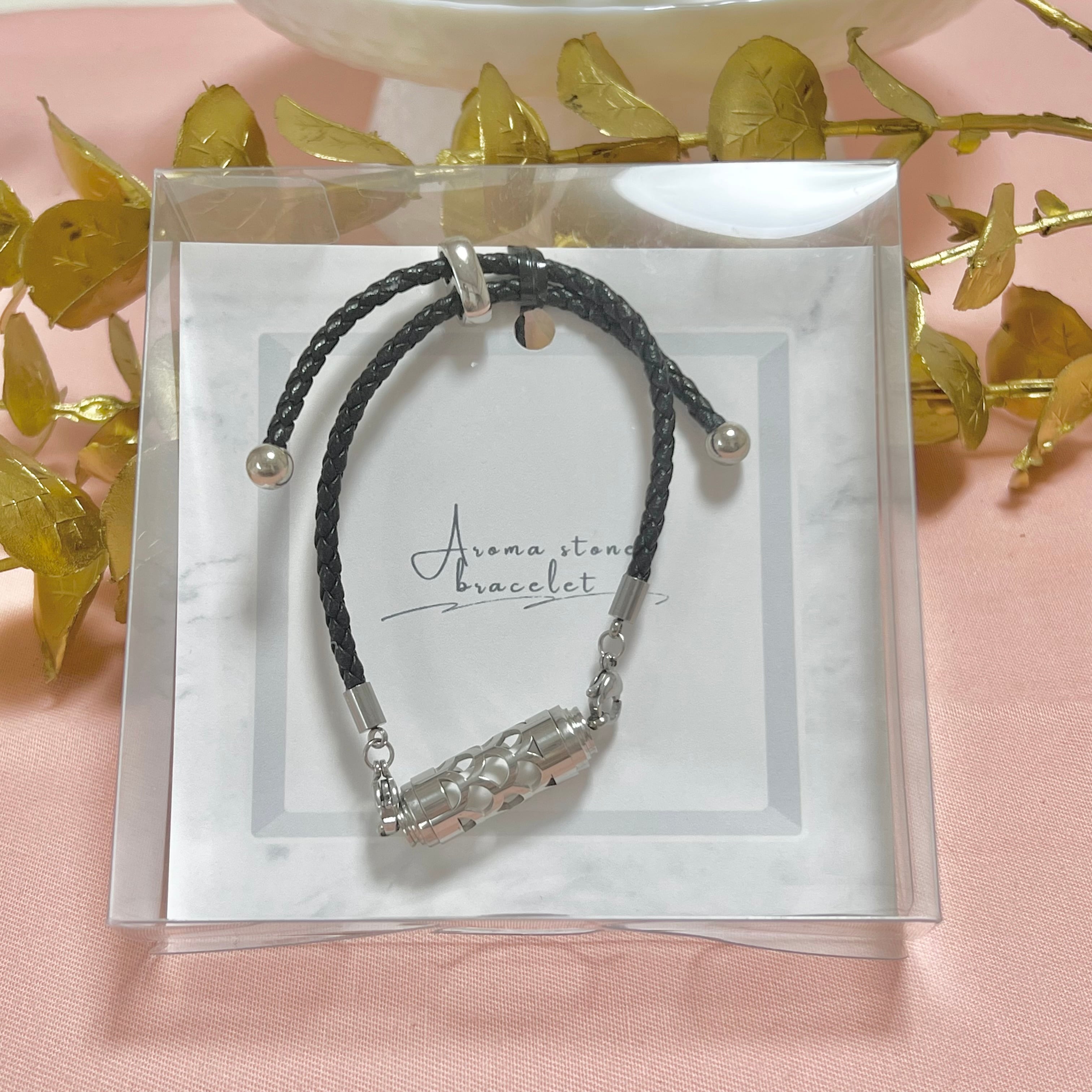 ・素材:ステンレス(本体)、レザー(ベルト)、石膏(アロマストーン)