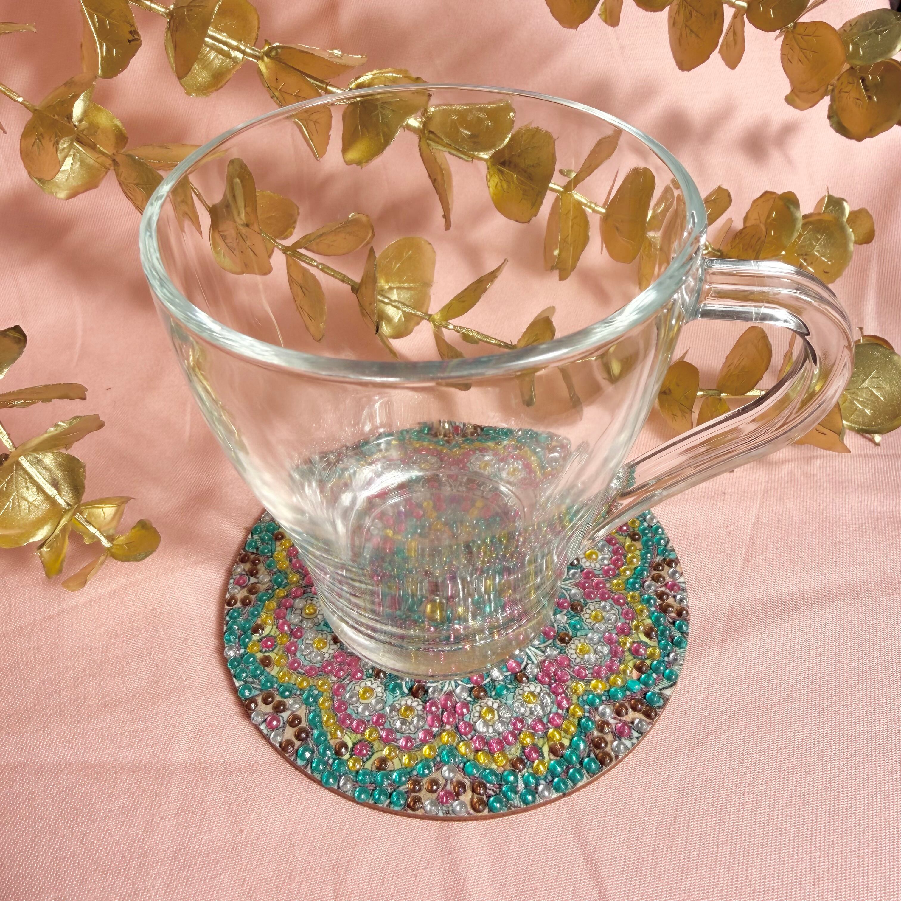ダイヤモンドアートコースター:曼荼羅グリーン系