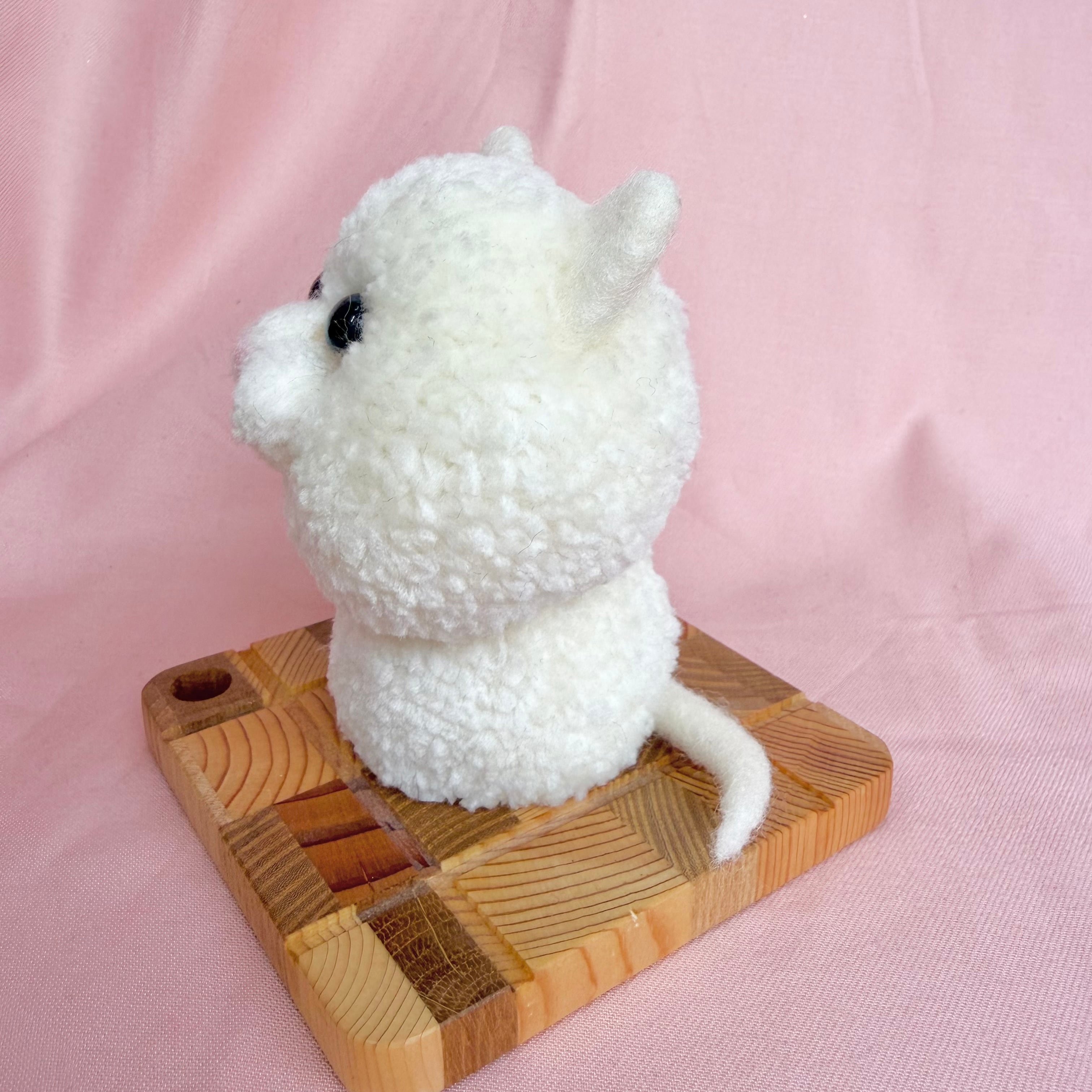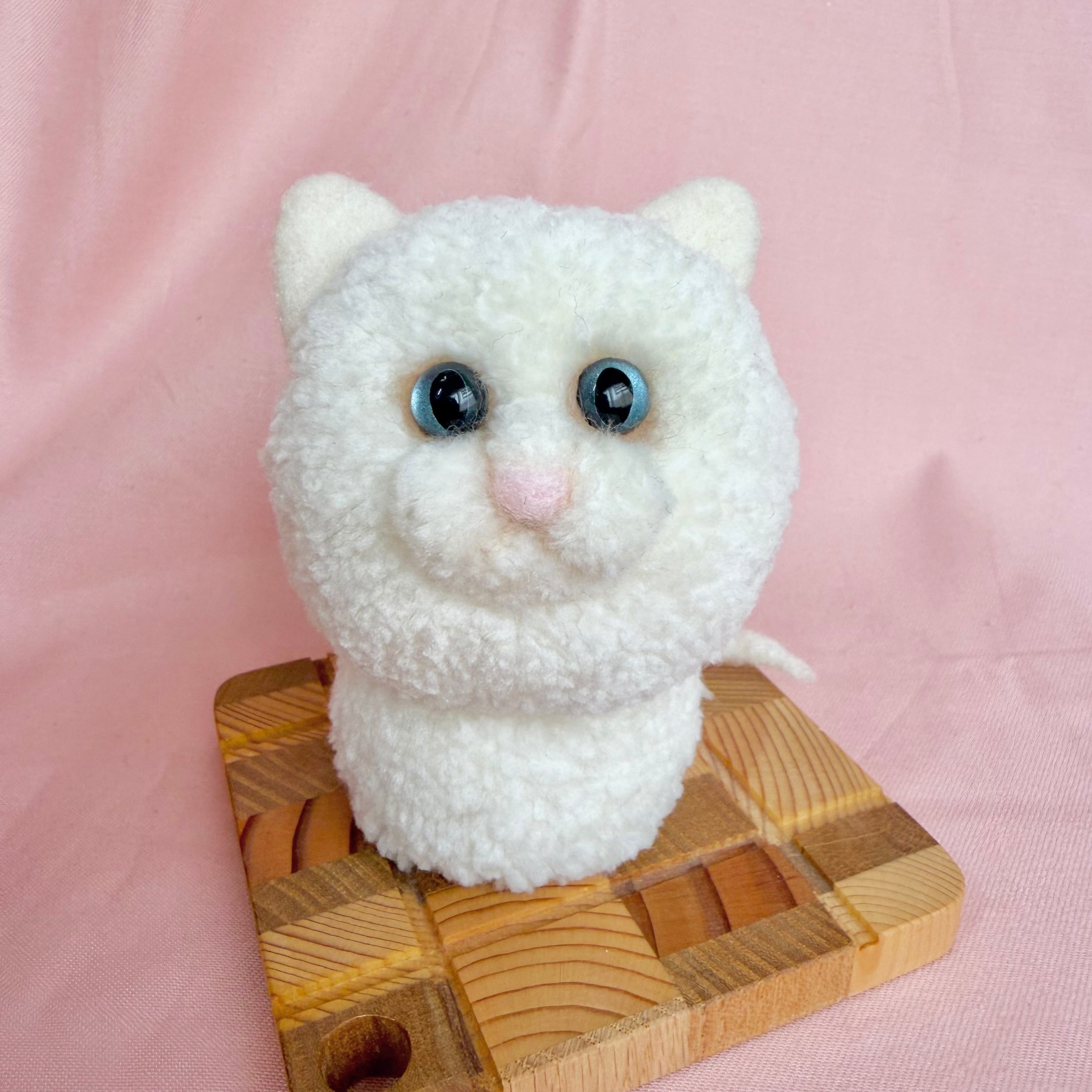 毛糸でできた置き型にゃんこ:見つめてるねこちゃん(白)